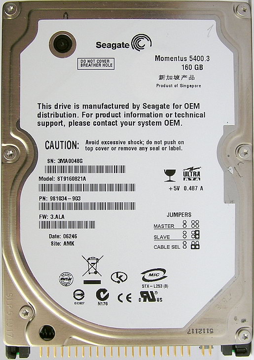- Seagate Momentus 5400.2 ST9120821A, 120 Гбайт UATA
