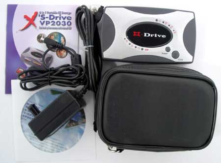 По компактности устройство близко к конкурентам: 130×75×25 мм при массе 288 грамм. Как и в случае Picture Pad, никакой док не нужен — USB-разъем и вход для БП расположены прямо на корпусе устройства. Плюсом X’s-Drive можно считать наличие слотов для различных типов карт: CompactFlash Type II, SmartMedia, ММС/SD и Memory Stick. С другой стороны, назвать устройство совсем универсальным не получится: для xD Picture Card или Memory Stick Pro все равно придется приобретать CF-адаптер. Просто сделать поддержку нескольких стандартов производителю ничего не стоило: используется многофункциональный однокристальный контроллер, уже зарекомендовавший себя в мультиформатных картоводах.