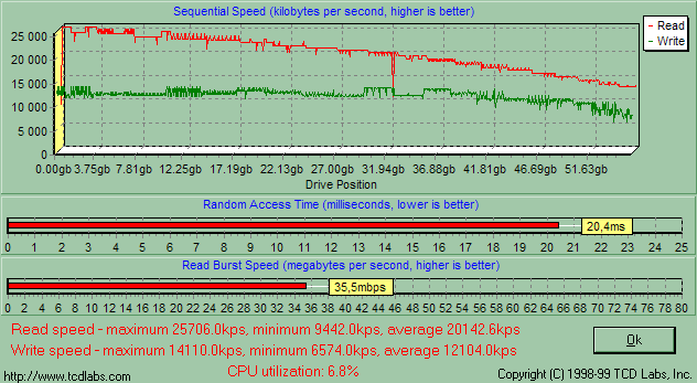 Для Picture Pad выход адаптера изменил лишь эту часть функциональных возможностей, VP2060 по сути отличается от VP2030 лишь измененным контроллером (изменения дизайна все-таки явление побочное, пусть и приятное), так что данная часть тестирования является основной для сегодняшнего обзора. Для сравнения я приведу также результаты Picture Pad и VP2030 с винчестерами, емкостью 20 Гбайт, в режиме USB 1.1 (а других у меня и нету :)). Начнем со времени доступа.