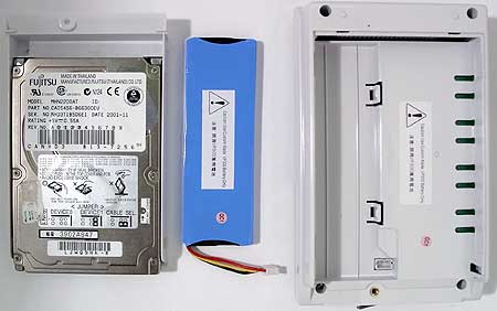Коренным образом изменилась схема крепления аккумулятора и жесткого диска. Ранее для снятия крышки нужно было открутить несколько винтов, а для доступа к аккумулятору — снять и винчестер, что делало операцию замены источника питания почти невозможной в полевых условиях. Сейчас же винчестер крепится не к самому устройству, а к задней крышке; для крепления всей конструкции используется всего один винт (без которого можно и обойтись). Таким образом, если вы сумеете добыть соответствующий аккумулятор, степень автономности устройства можно сильно увеличить, что является большим плюсом. Пусть и теоретическим, поскольку аккумуляторы еще нужно поискать (для сравнения: смена аккумулятора в Delkin eFilm PicturePad не требует вообще ничего откручивать, а сами аккумуляторы свободно продаются там же, где и устройство), но все же такой шаг Vosonic можно только приветствовать.