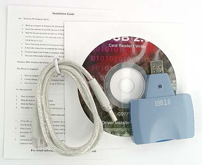 Комплект поставки KECF-USB2 прост и незатейлив: кроме самого устройства в коробке можно найти лишь USB-удлинитель, очень краткую инструкцию, да CD с драйверами для Windows 98 и документацией. Хорошо, что драйверы не придется откуда-нибудь качать (как в случае PQI), плохо что CD стандартного диаметра — для устройства, претендующего на мобильность, больше подошли бы 80 мм. Впрочем, Windows 98 постепенно уходит в прошлое, так что очень многие пользователи вполне обойдутся без драйверов, даже если им и придется подключать накопитель куда-либо, кроме своего компьютера. Более «свежие» версии Windows картовод распознают сами и определяют его как абстрактный USB-накопитель, что мы уже наблюдали в случае PQI и многих других картоводов (потому и иллюстрировать этот факт я не стану).