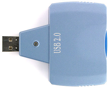 В плане дизайна все компактные модели делятся на две группы. Представители обеих подключаются к компьютеру непосредственно — без длинного кабеля (это встречается и в мультиформатных моделях, но не всегда). В первом случае к корпусу устройства жестко прикреплен короткий USB-кабель, при транспортировке убирающийся вглубь корпуса. Именно такой подход применяется PQI в Travel Flash CF Card Reader (мультиформатные Travel Flash, кстати, базируются на том же принципе). В KECF-USB2 мы видим другой вариант конструкции: USB-разъем находится на самом корпусе устройства.