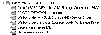 Для встроенного контроллера пара дисковых устройств резервируется сразу после включения ноутбука. Поддерживается горячая замена карт, т. е. в этом плане накопитель эквивалентен внешнему устройству, только всегда включенному. PCMCIA изначально поддерживала Plug’n’Play, так что дополнительный диск появляется лишь тогда, когда карта действительно установлена. Независимо от того, что это — CF через переходник или мультиформатный адаптер с картой, в свойствах системы выглядит все одинаково: как дополнительный PCMCIA-IDE контроллер.