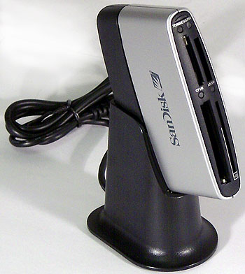 Более интересное устройство, поскольку, оно одно из немногих на рынке поддерживает также xD-Picture. В принципе, подобный накопитель мы недавно рассматривали, однако Lexar что-то намудрил с поддерживаемыми объемами карт: как выяснилось, одной лишь смены firmware для исправления ошибок недостаточно. На рынке присутствуют целых три модификации картовода, одной из которых смена прошивки вообще не нужна, а еще одной она просто не помогает — в любом случае, xD-карты объемом более 128 Мбайт поддерживаться не будут (с таким я и столкнулся). В случае SanDisk все просто — без каких-либо дополнительных ухищрений устройство работает с картами всех существующих сегодня объемов.