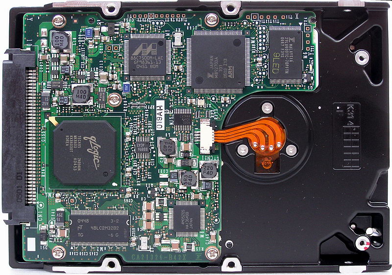 Из других особенностей современных SCSI-дисков следует отметить то, что все производители стали применять новые, более быстрые, производительные и компактные (в плане занимаемого места на печатной плате) контроллеры дисков (см. фото накопителей). При этом предпочтение отдается решениям с высокой степенью интеграции компонентов, чтобы снизить общее количество элементов на плате. В результате, если для предшественников правилом было использование платы контроллера на всю нижнюю поверхность «банки» диска, то теперь более компактные платы контроллеров (в половину или 2/3 площади) являются хорошим тоном. Интерес вызывает и то, что уровень микросхемотехники достиг такого высокого уровня, что стало нецелесообразным разрабатывать различные контроллеры для пятнадцатитысячиков и десятитысячников (что было правилом ранее). И теперь диски одного производителя с разной скоростью вращения имеют очень похожие или даже практически идентичные платы контроллеров (например, у Maxtor и Seagate). Впрочем, некоторые «рудименты» в этом плане пока можно встретить (например, у Fujitsu и десятитысячников Hitachi).