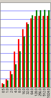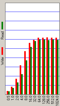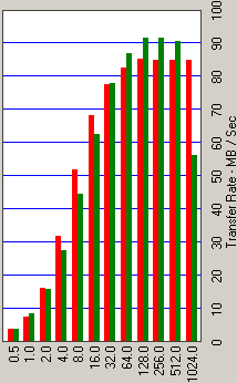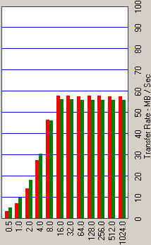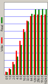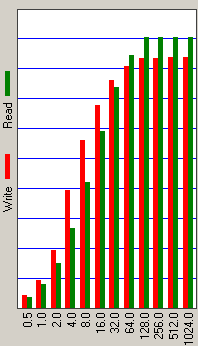 Здесь налицо явное улучшение алгоритмов кэширования у дисков последнего поколения по сравнению со стареньким P80 — увеличилась скорость записи блоками самого малого размера, а также кардинально улучшилось упреждающее чтение крупных объемов данных (это видно по тестовым файлам от 1 Мбайт до 4 Мбайт)! Но с другой стороны, немного упала скорость чтения небольшими блоками (2-16 Кбайт) на файлах еще большего размера (8-32 Мбайт). Каких-то существенных различий между дисками серий T133 и P120 здесь не наблюдается — все-таки они используют один и тот же микроконтроллер. Поэтому SP2514N выигрывает лишь на самых крупных файлах, которые просто не помещаются в кэш диска, и только за счет лучшей скорости линейного доступа.