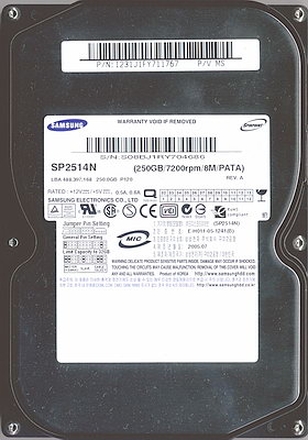 Напомню также, что не так давно сменилось обозначение моделей жестких дисков Samsung. Теперь цифрами обозначается только емкость в гигабайтах, две буквы перед цифрами обозначают класс (H — жестких диск, M или D — мобильный или настольный соответственно). Буква после цифр обозначает количество и тип головок (L=6, J=4, I=3, H=2), а последняя буква обозначает серию дисков и интерфейс.