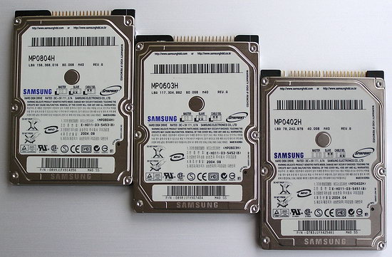 Диски Samsung серии SpinPoint M40: модели MP0804H, MP0603H и MP0402H.