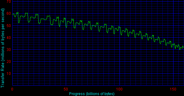 Интересно. Максимальная скорость линейного чтения у Samsung SP1604N чуть ниже, чем должна быть по идее. Смотрим на график.