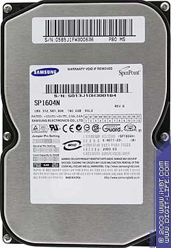 Диск Samsung SpinPoint SP1604N представляет линейку «полноразмерных» дисков P80 (Samsung, как и Maxtor, выпускает также «одноголовые» диски уменьшенной толщины). Сразу скажу, что по информационной поддержке компания Samsung уж точно уступает ведущим производителям. На международном сайте компании информации о новых линейках жестких дисков нет вообще. Похоже, сайт не обновлялся уже очень давно. Россия в этом отношении впереди — линейка P80 на сайте www.samsungstorage.ru, правда, почему-то есть только информация о моделях с интерфейсом Serial ATA, хотя самих моделей на рынке пока нет. В общем, для компании, претендующей на лидерство, положение ненормальное. Так что технические характеристики дисков с параллельным интерфейсом приведены предположительно :).