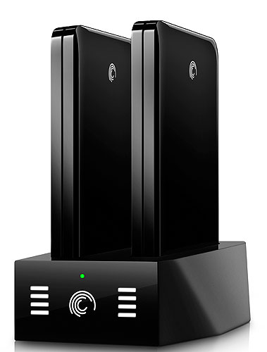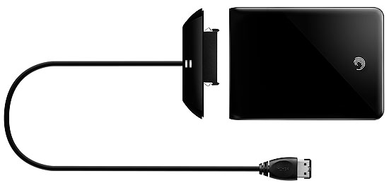 Чуть более высокую строчку в табели о рангах занимает GoFlex Pro. Он немного меньше сам по себе (105 х 82 х 14 мм), бывает только черным, но главное отличие — внутри установлен винчестер со скоростью вращения 7200 об/мин на 500 ГБ. Что ж — по мере роста популярности скоростных интерфейсов это вполне может стать востребованным, в отличие от времен господства USB 2.0, когда более быстрый винчестер в ВЖД лишь увеличивал цену, не влияя на производительность. А еще в комплект Pro-версии входит док-станция с индикатором заполненности диска. В общем, это устройство вполне может конкурировать и с портативными, и со стационарными моделями по портативности, скорости работы и удобству стационарного использования одновременно.