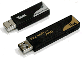 Еще одним вариантом выхода может являться пара чипов флэш-памяти, упакованных в миниатюрный корпус и снабженных USB интерфейсом — так называемые USB-винчестеры (не путать с обычными механическими винчестерами, представляющими из себя обычный ATA винчестер с USB интерфейсом). Рассмотрим этот вариант решения проблемы на примере двух продуктов: Flash USBDrive от корейской JMTek и ThumbDrive от японской Shin-Nichi.
