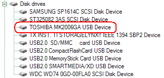 Вот так она определяется операционной системой. Сразу видна модель используемого жесткого диска — MK2006GA. Протестированный год назад LaCie Data Bank использовал более старую модель от Toshiba — MK2003GAH, так что можно предположить, что производительность новинки будет несколько более высокой. Впрочем, это мы как раз и проверим, но чуть позже.