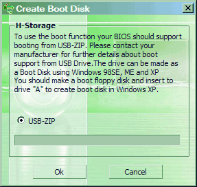 С загрузкой тоже все достаточно просто. Поддерживается метод загрузки USB-ZIP, который вполне понятен большинству современных и не очень материнских плат (у меня такое умела еще старенькая EpoX на КТ333 пятилетней давности; впрочем, в то время плату с такой функциональностью нужно было искать специально — сейчас проблем нет), грузить можно только DOS, для превращения накопителя в загрузочный его необходимо отформатировать при помощи H-Storage под управлением Windows 98, ME или ХР (для последней придется сначала создать загрузочную дискету, и оставить ее в дисководе во время работы программы).