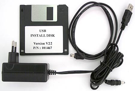 Комплект поставки прост: кроме самого устройства в него входит дискета (!) с драйверами для устаревших ОС, USB-кабель и блок питания (для унификации с плеерами применен внешний — так проще их аккумуляторы заряжать, поскольку ток можно больший взять). Ничего лишнего.