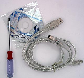 В комплект поставки входят USB-кабель, кабель для дополнительного питания от клавиатурного порта, CD с драйверами и очень краткая бумажная инструкция. Есть и чехол, но очень простенький.
