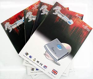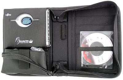 В прошлом году компания Fujitsu обратила внимание на рынок внешних накопителей. Посчитала, почему отгружаются винчестеры большинству партнеров, играющих на этом рынке, прикинула стоимость отдельных коробок, сравнила сумму этих двух цифр с ценой законченного решения и пришла к выводу, что негоже давать другим наживаться на собственной продукции, не оставив кусочек пирога и для себя. Так на свет появились HandyDrive, причем сразу двух модификаций: Data Edition, с интерфейсом USB 2.0 и Video Edition, рассчитанный на применение FireWire. Названия способны ввести в заблуждение, поскольку для переноса данных прекрасно подходят оба. Впрочем, первому общение с бытовой видеотехникой недоступно, так что все в порядке.