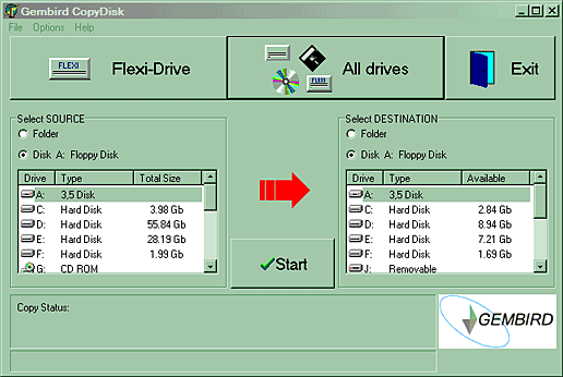 Во-первых, утилита CopyDisk, предназначенная для копирования целых логических дисков или отдельных каталогов. Работает как с Flexi-Drive, так и с другими логическими дисками.