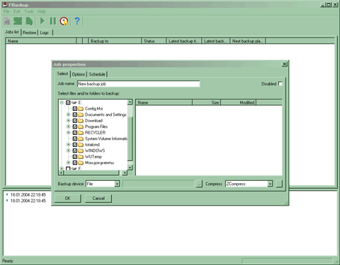 Во-вторых, F-BackUp, назначение которого следует из названия. Конечно, сравниться по мощности со специализированными коммерческими программами не может, однако на первое время может подойти. По крайней мере, поможет пользователю задуматься о необходимости резервного копирования и предназначенных для этого утилитах :) А там, глядишь, он дорастет до связки nnCron+nnBackUp или до чего-нибудь подобного.