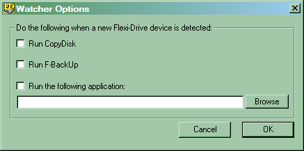 Простенькая утилита FWatcher. Сидит себе среди задач, никого не трогает, способна при подключении внешнего накопителя автоматически запустить от одной до трех программ, в число которых входят указанные выше, плюс еще одна по выбору пользователя. В общем, пакет дополнительных программ богатым не назовешь, однако заметна хоть какая-то забота о пользователе.