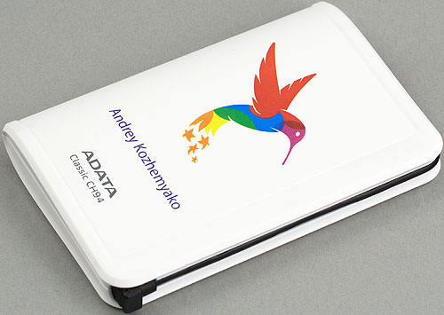 Кстати, проявлять ее может не только конечный покупатель — в результате серия накопителей оказалась практически идеальным вариантом для создания сувенирной продукции: ничто не помешает разместить на корпусе любые картинки и не только. Собственно, попавший в наши руки экземпляр такую кастомизацию уже прошел, причем силами производителя — ваш покорный слуга получил представителя эксклюзивной ограниченной редакции с новым логотипом A-data и... собственным именем и фамилией на лицевой поверхности. Вообще говоря, любой ВЖД ныне является хорошим подарком, однако подобным образом доработанный — практически бесценен, что является весомым плюсом в сегодняшнее время безликих массовых изделий ;)