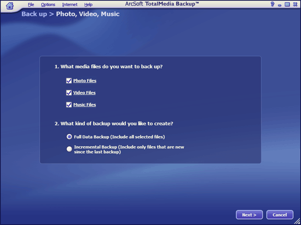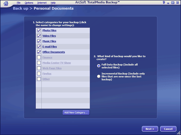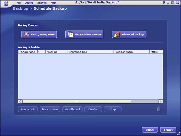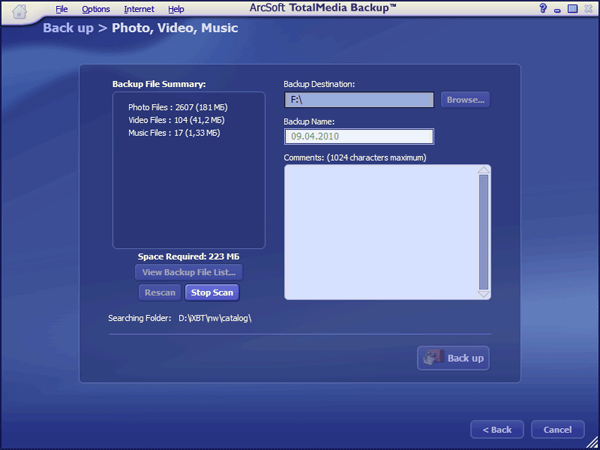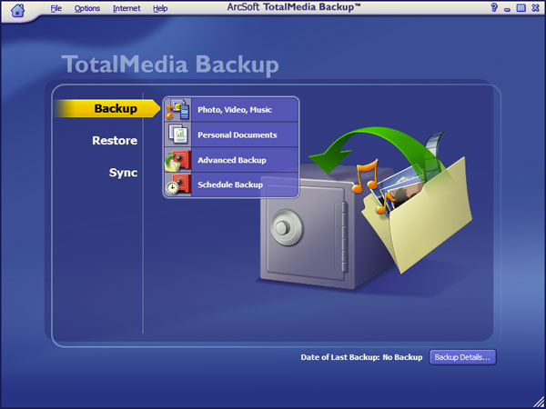 А что есть, так это программа резервного копирования ArcSoft TotalMedia Backup. Обладает традиционной для подобных программ функциональностью и удобным интерфейсом. Особенно для неподготовленного пользователя, который легко и быстро может воспользоваться предопределенными сценариями резервного копирования.
