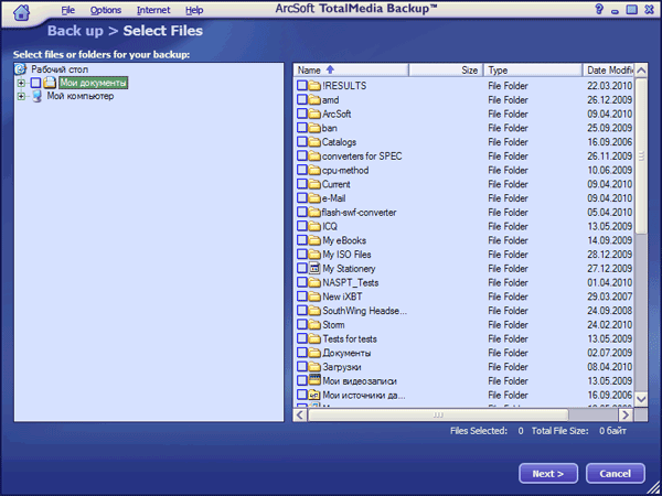 Но можно и не обращать внимание на мастеров, а просто вручную выбрать нужные файлы и папки.