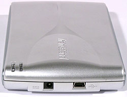 Внешне накопитель не изменился, и комплект поставки остался почти таким же. Как и ранее, мы получаем устройство, упакованное в мощную кожаную сумочку, куда так же помещаются: USB-кабель, кабель для дополнительного питания и диск с драйверами для Windows 98. Изменения коснулись только кабеля питания: если раньше устройство при необходимости нужно было подпитывать от порта PS/2, то теперь для этого используется еще один USB-порт, который можно использовать для подключения периферии с низкими требованиями к питанию. Изменение вполне своевременное — среди пользователей таких устройств немалую часть составляют владельцы ноутбуков, а на последних моделях портативных компьютеров порты PS/2 уже отсутствуют.