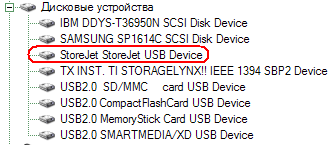 И по списку устройств не скажешь, что это Transcend — подобно безымянной продукции, накопитель определятся как установленный в него винчестер.