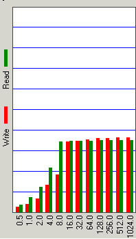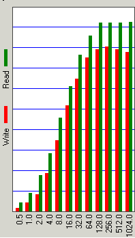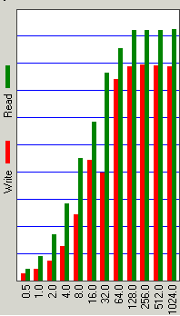 Дополнительную информацию дает сопоставление среднего времени доступа, измеренного отдельно для чтения и записи — по тому, как падает среднее время доступа при записи относительно чтения, можно судить, в частности, об эффективности работы алгоритмов отложенной записи и кэширования записываемых данных в буфере диска.