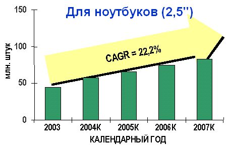 Собственно, решение Western Digital, кстати, недавно поменявшей свой традиционный «микросхемный» логотип на две «более понятные» (например — юго-восточным покупателям) буквы «WD» (см. на картинке вверху), броситься нынче в новый для себя «омут» мобильных накопителей, очень понятно — этим сегментом рынка сейчас не интересуется только о-о-очень ленивый производитель. Ведь он (сегмент) растет теперь как на дрожжах: среднегодовой прирост рынка 2,5-дюймовых накопителей для ноутбуков оценивается аналитиками как 22,2% (правда, по количеству штук, а не по прибыльности, которая, по-видимому, окажется ниже, поскольку конкуренция тут нарастает еще более быстрыми темпами :)), а рынок жестких дисков для смежной области — PVR, DVR, телеприставок, игровых систем, портативных аудио- и видеоплееров — увеличивается еще более лавинообразно — на 50% в год!