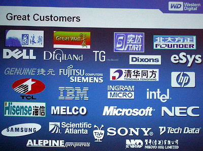 Для сравнения — рынок жестких дисков для настольных ПК растет (и будет расти в ближайшее время) всего на 8% в год, правда, пока оставаясь в количественном отношении гораздо крупнее — около 200 миллионов штук в год против десятков миллионов для менее «традиционных» мобильных сегментов. И если уже Seagate в прошлом году вернулась к 2,5-дюймовым дискам, а также недавно Samsung (и очень скоро — Maxtor) впервые обратились к «малюткам», то и Western Digital, имеющая в своем «активе» многих крупнейших игроков рынка информационных и «развлекательно-бытовых» технологий (см. слайд),