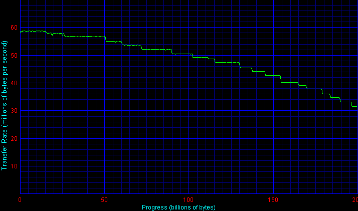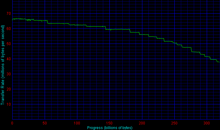 Попутно замечу, что детальный анализ графиков скорости линейного чтения всех трех дисков WD Caviar SE (по аналогии, например, с обзором Seagate Barracuda 7200.8) не выявил каких-либо признаков применения так называемого «адаптивного форматирования» (то есть когда каждая из сторон пластины каждого диска форматируется с индивидуальной линейной плотностью записи с целью достичь максимальной скорости в зависимости от параметров покрытия и характеристик каждой головки). Впрочем, это еще не исключает полного его отсутствия в этих дисках, поскольку оно может «скрываться» транслятором физического пространства диска в логическое.