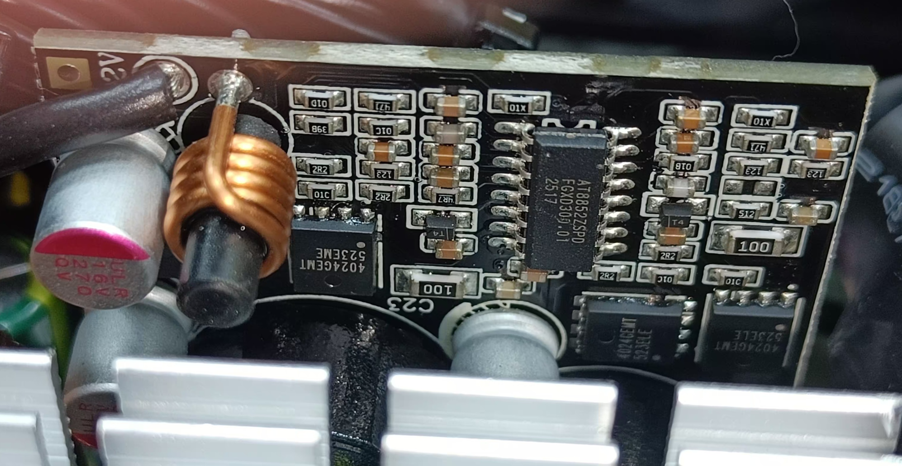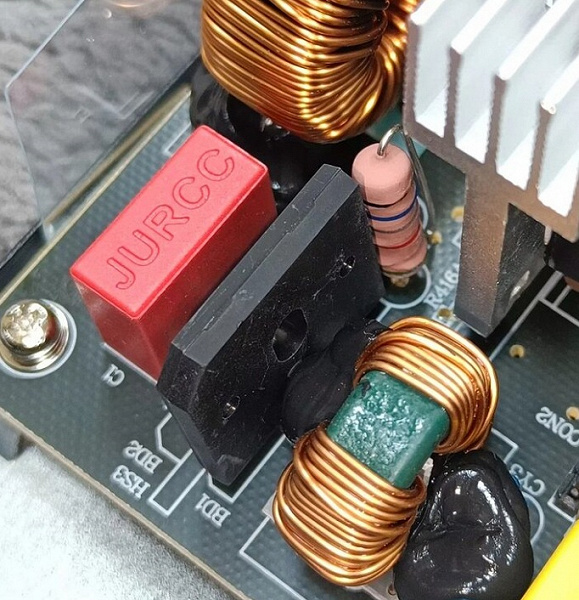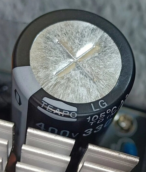Высоковольтный конденсатор в блоке питания имеет марку Teapo. Низковольтные конденсаторы выпущены под маркой Chengx.