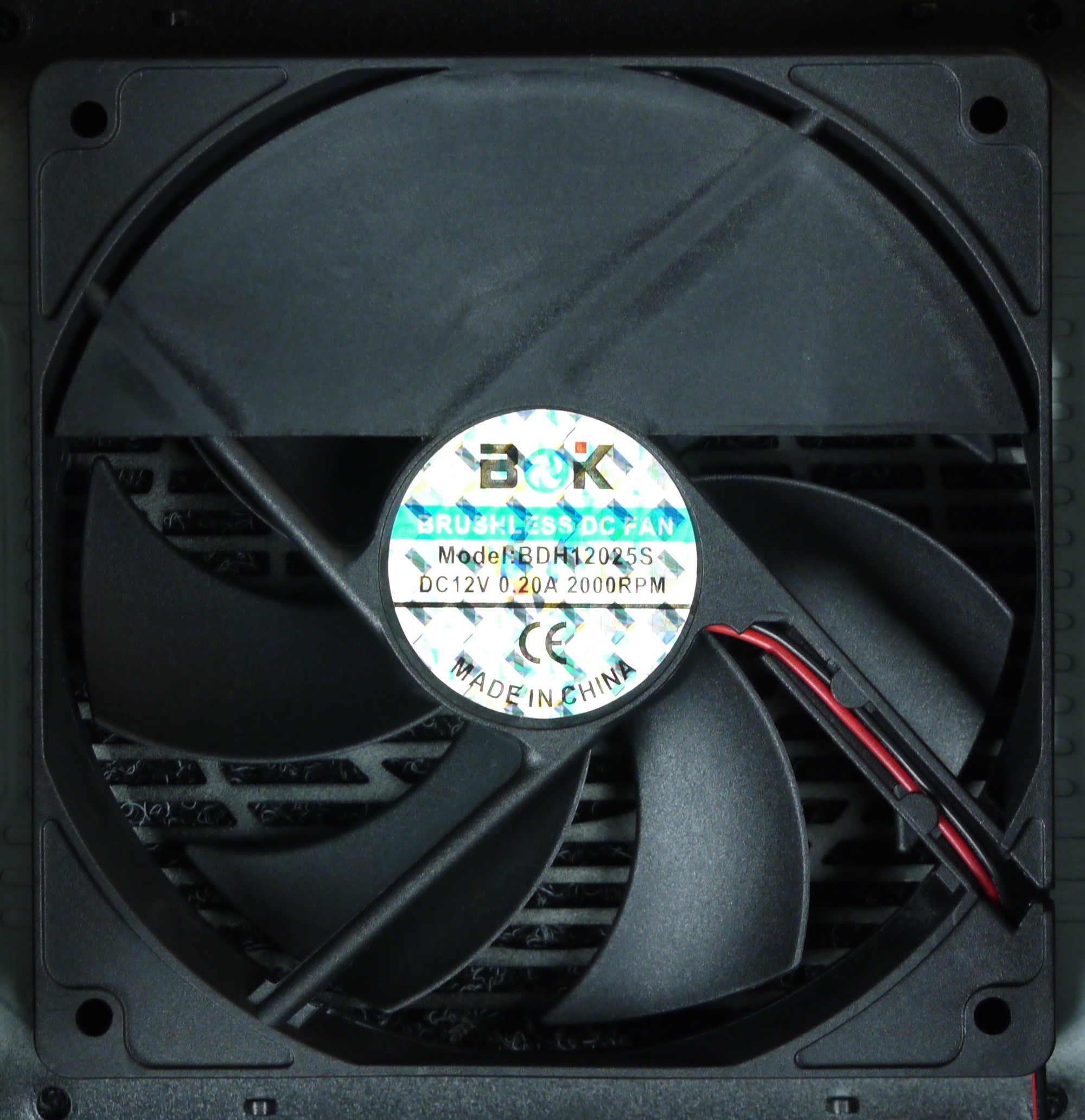 В блоке питания установлен вентилятор BOK RBDH12025S (2000 об/мин) типоразмера 120 мм, подключение двухпроводное, через разъем. Вентилятор основан на подшипнике скольжения, срок службы подобных вентиляторов обычно чуть больше гарантийного срока на сам блок питания.