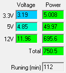 | Нагрузка через разъемы | 12VDC, Вт | 5VDC, Вт | 3.3VDC, Вт | Общая мощность, Вт |