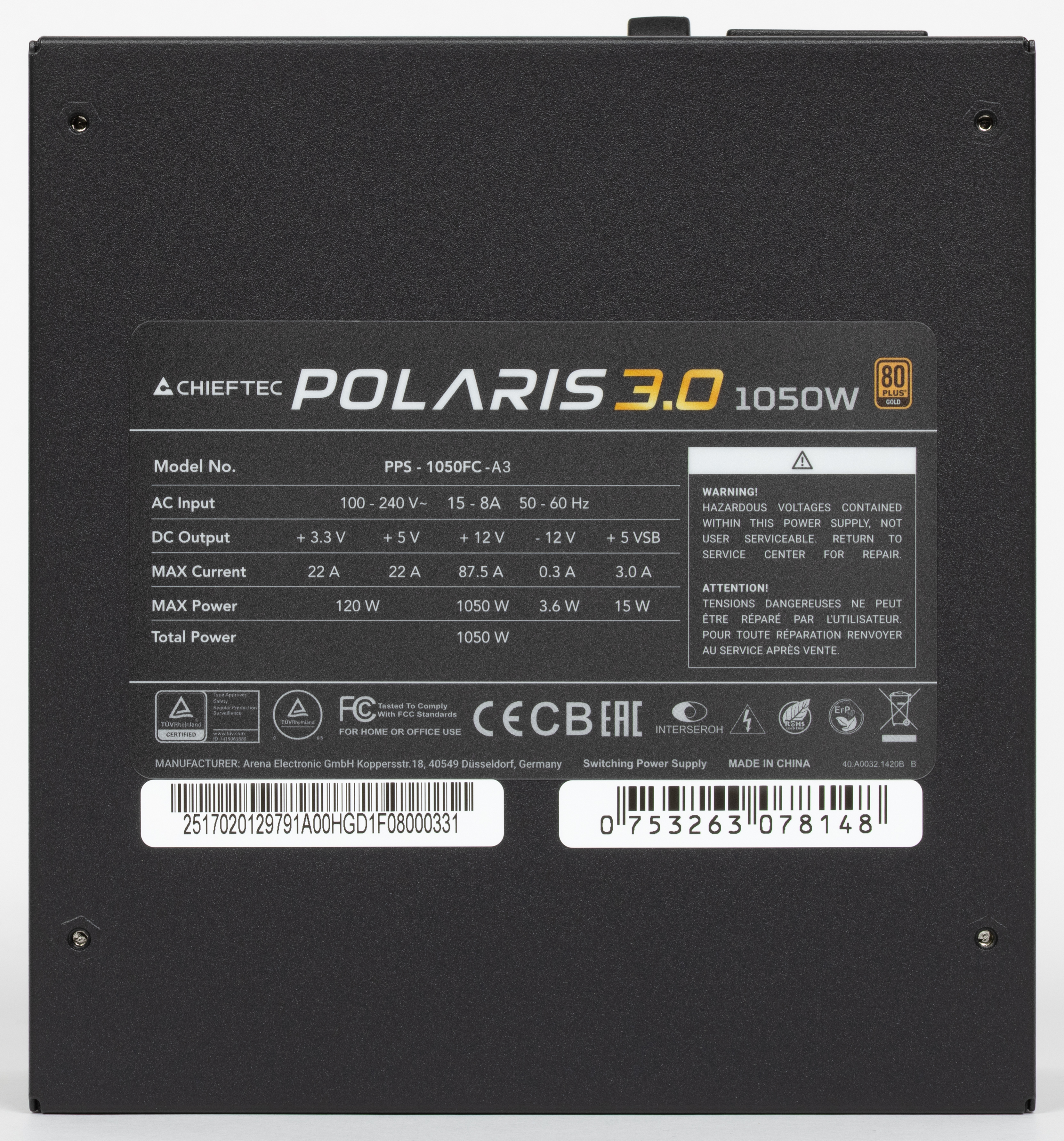 Потребительские качества Chieftec Polaris 3.0 1050W (PPS-1050FC-A3) находятся на очень хорошем уровне. Нагрузочная способность канала +12VDC высокая, что позволяет использовать данный БП в мощных системах с двумя видеокартами или одной максимально мощной, в том числе подключать ее посредством разъема питания PCIe 5.1.