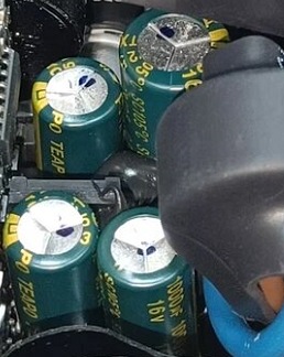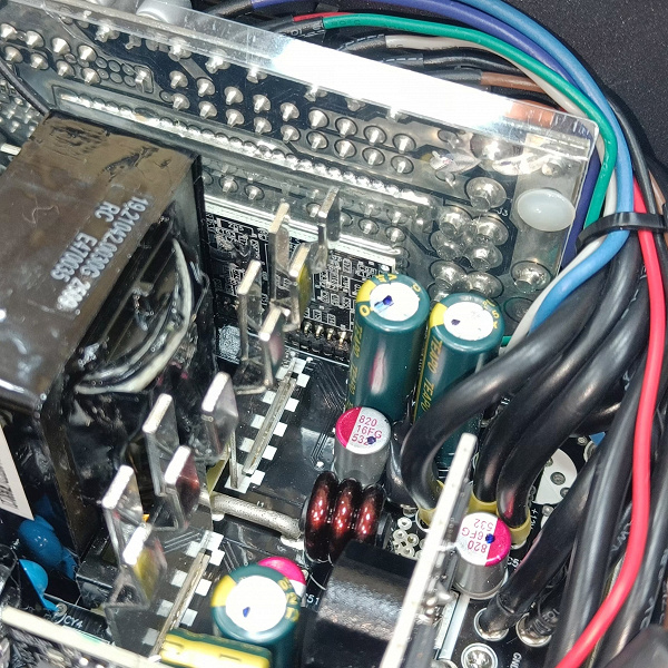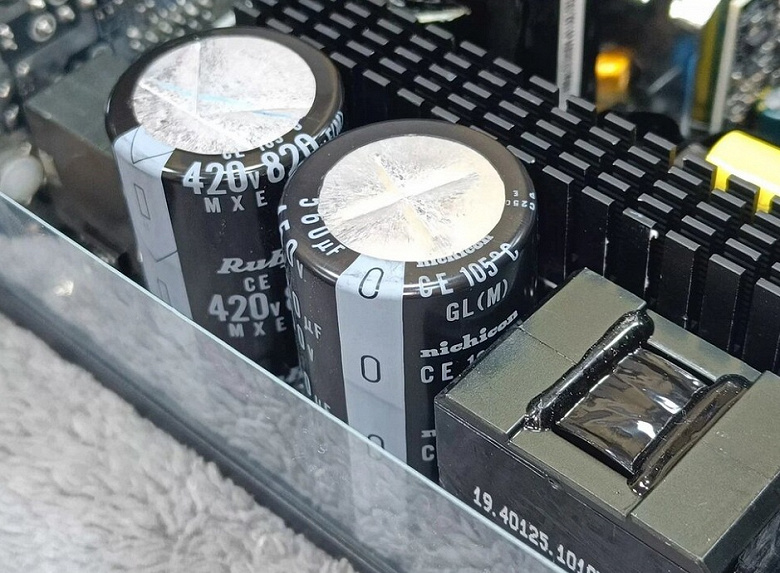 Высоковольтные конденсаторы представлены батареей из двух элементов под японскими торговыми марками Nichicon и Rubycon — 560 мкФ (450 В) и 820 мкФ (420 В) соответственно.