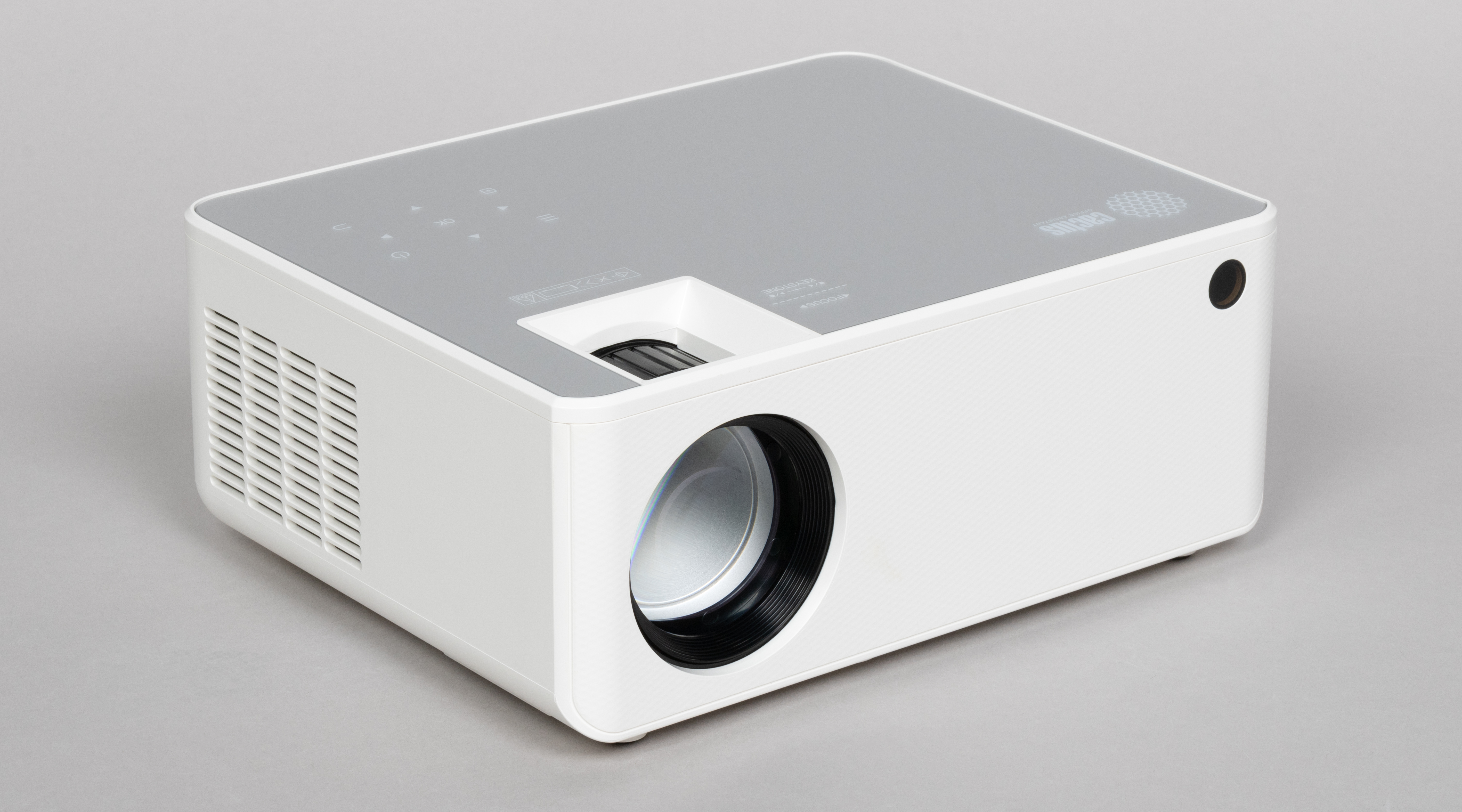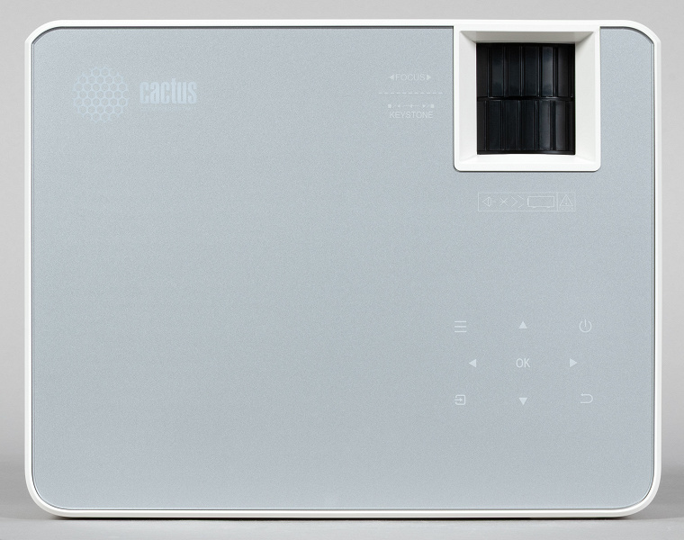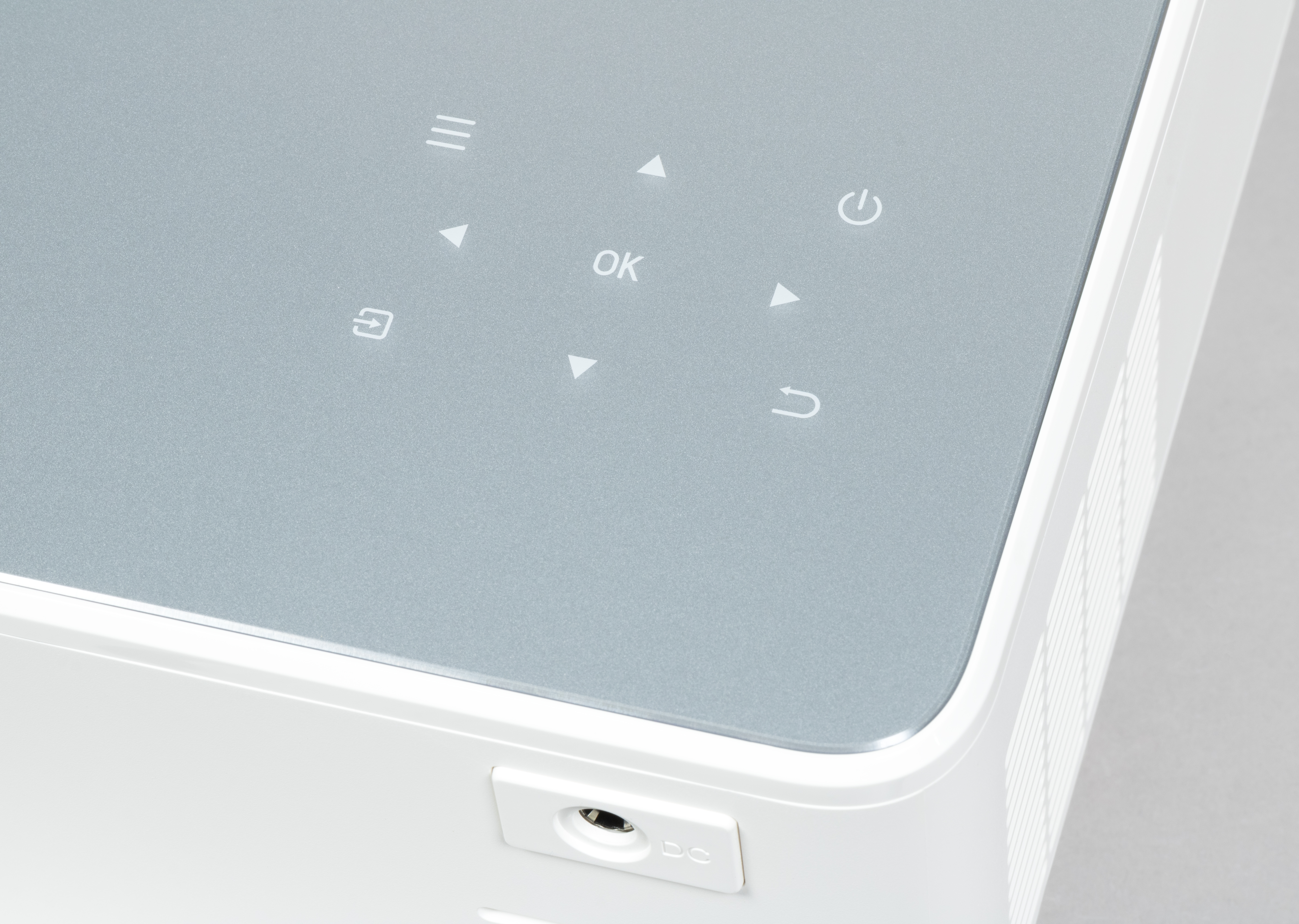 Корпус проектора изготовлен в основном из пластика с молочно-белой матовой поверхностью. Верхняя панель прикрыта пластиной из прозрачного пластика с серебристой подложкой.