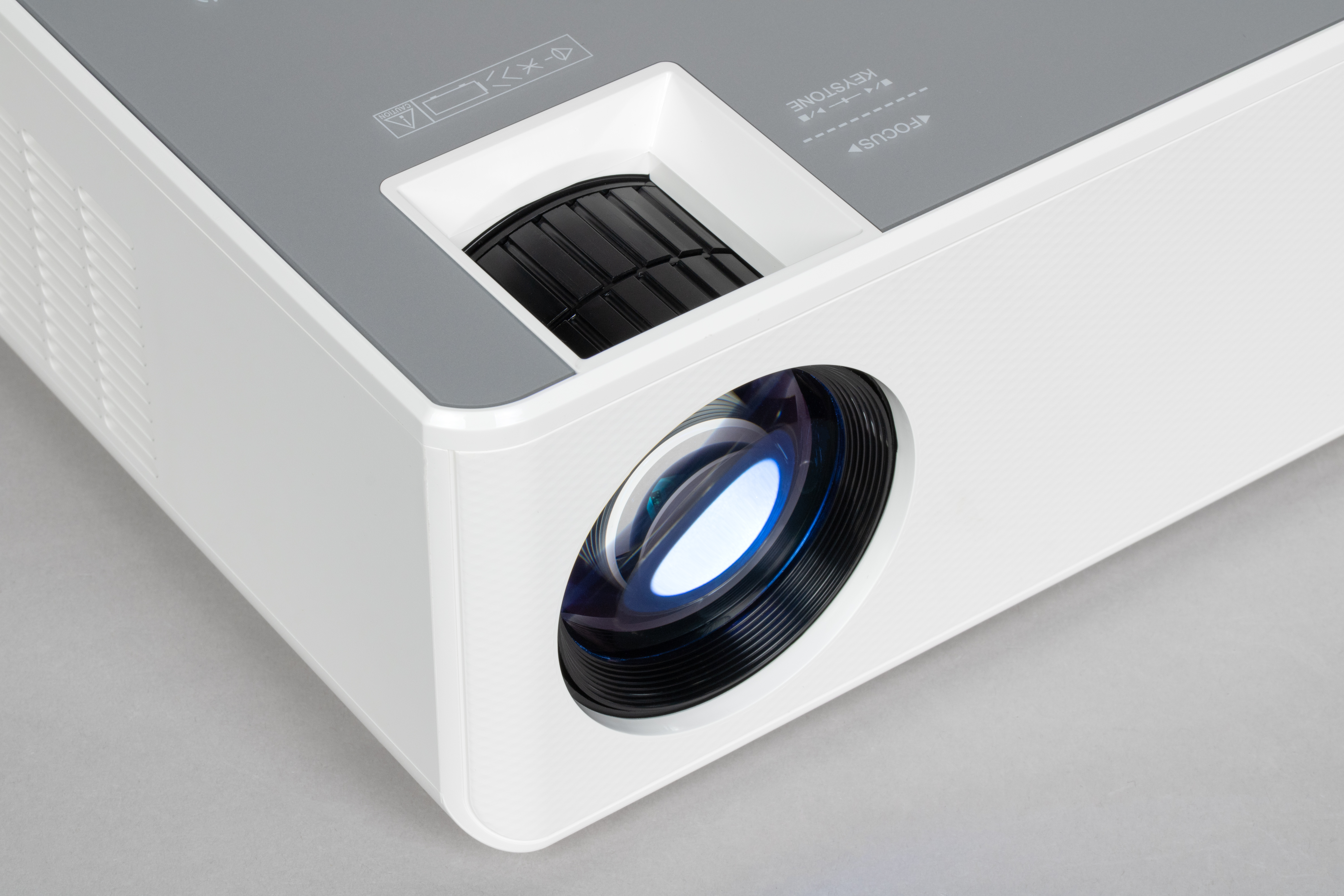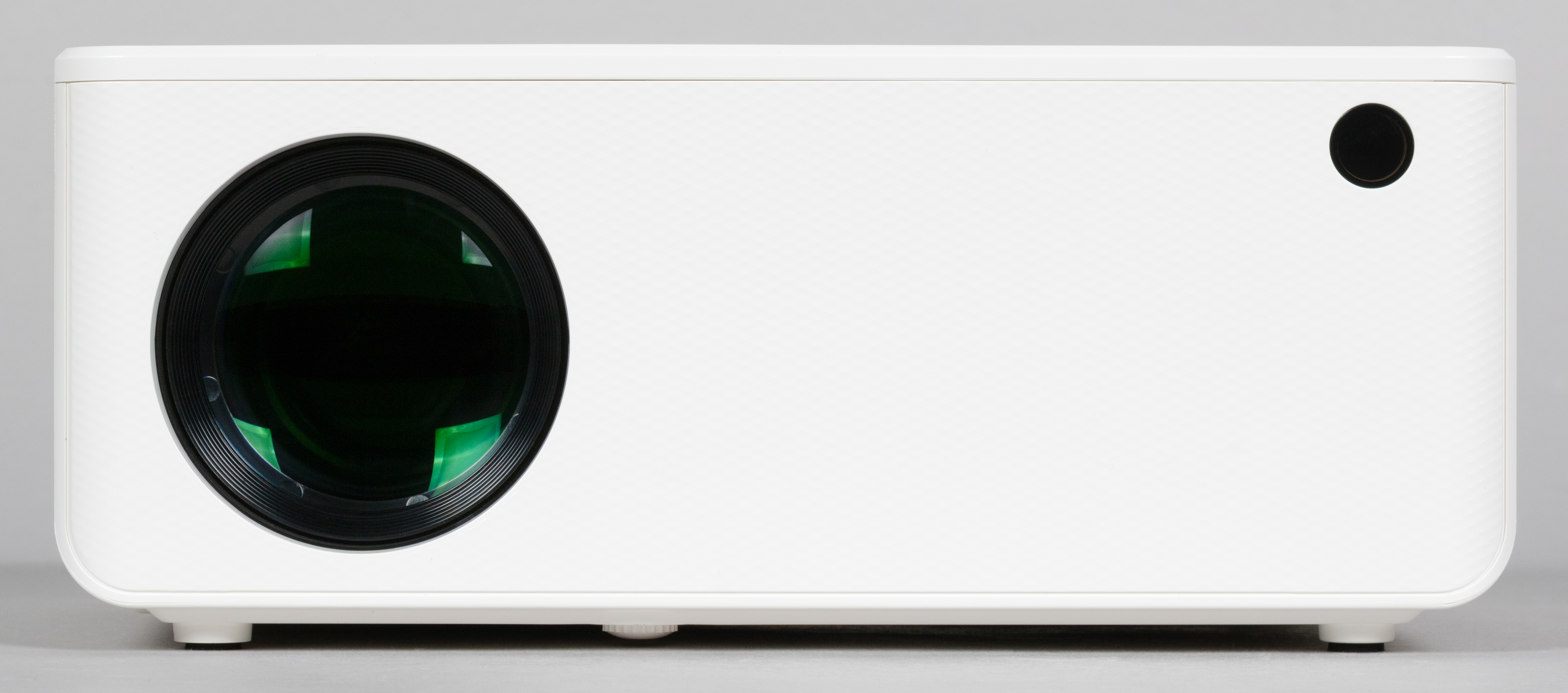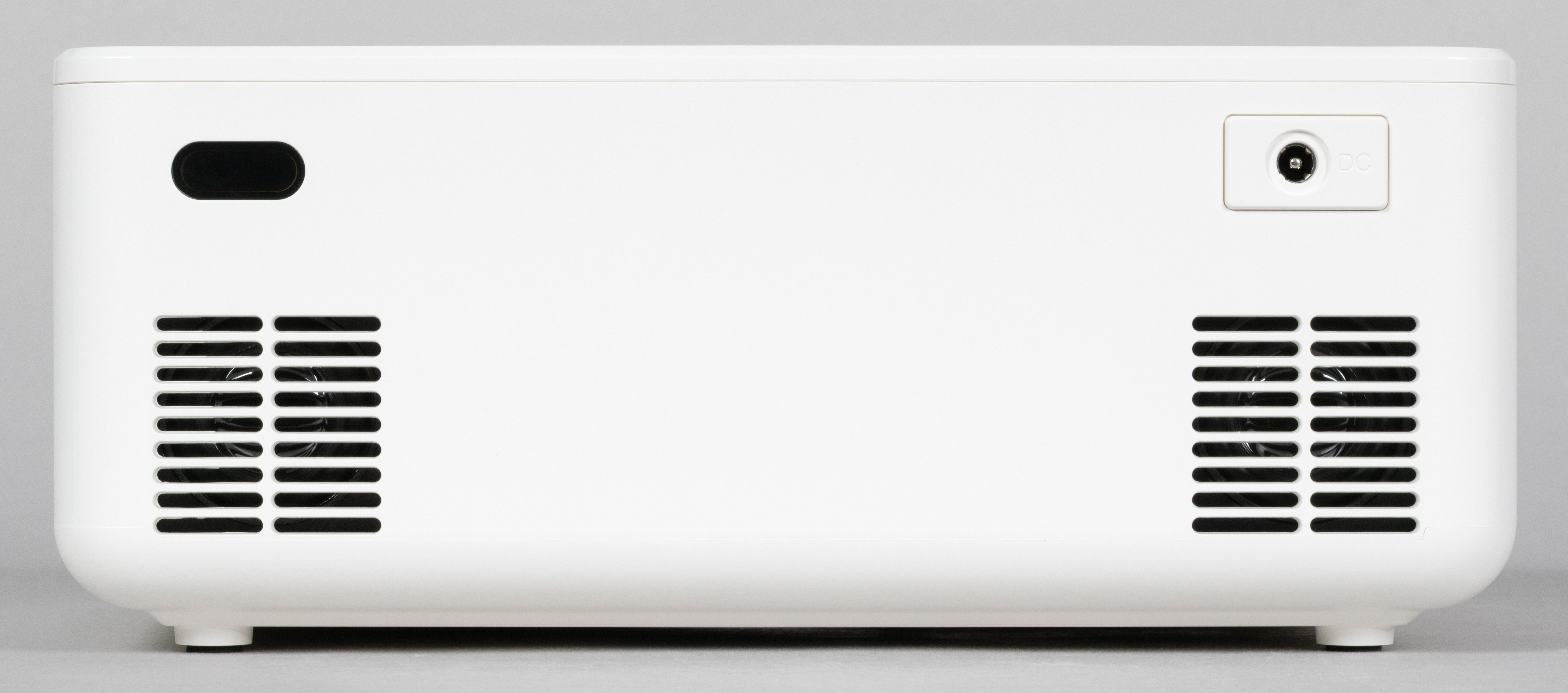 Корпус проектора изготовлен в основном из пластика с молочно-белой матовой поверхностью. Верхняя панель прикрыта пластиной из прозрачного пластика с серебристой подложкой.