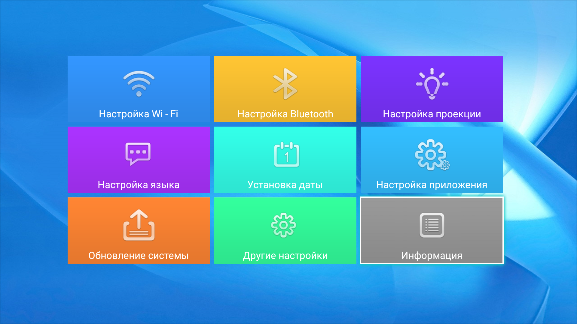 Меню с настройками проектора можно вызвать с домашней страницы. Настроек совсем немного.
