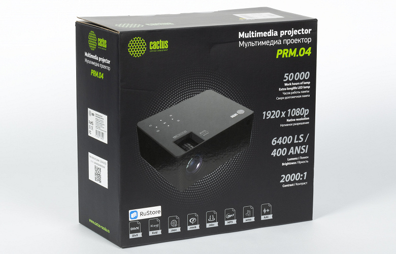 Cactus CS-PRM.04 — это устройство всё-в-одном, сочетающее в себе проектор, мультимедийный плеер и акустическую систему. С его помощью на большом экране (до 100 дюймов даже не в полной темноте) можно демонстрировать видео и фотографии, при этом источниками контента могут быть USB-накопители, мобильные устройства с возможностью беспроводной передачи видео и сетевые сервисы. Также к проектору можно подключать по HDMI внешние источники изображения и звука. Поддерживается и работа проектора в качестве Bluetooth-колонки. Для игр проектор непригоден из-за слишком большой задержки вывода. За счет использования ОС Android функциональность устройства может быть расширена путем установки тех приложений, которые больше устроят пользователя по набору функций и оформлению.