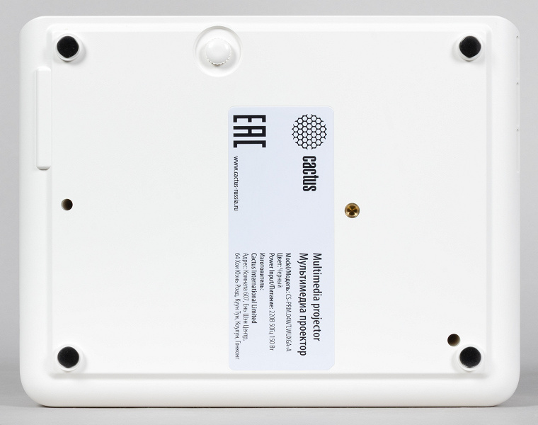 На днище находятся четыре резиновые ножки и резьбовое гнездо М6, позволяющее закрепить проектор на потолочном кронштейне.