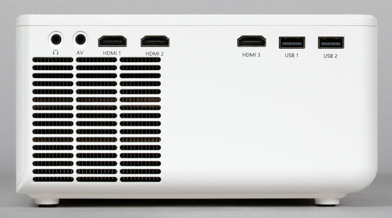 Согласно нашим измерениям, габариты проектора — 255×105×198 мм (Ш×В×Г, с ножками), а масса — 1788 г. Блок питания с кабелем питания вместе весят 630 г.