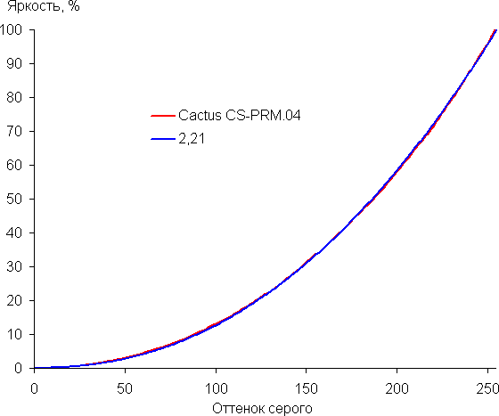 Аппроксимация полученной гамма-кривой дала значение показателя 2,21, что очень близко к стандартному значению 2,2, поэтому картинка имеет естественную светлоту. Реальная гамма-кривая почти не отклоняется от аппроксимирующей функции: