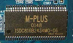 На карте установлены микросхемы памяти марки M-Plus, время выборки 6 нс, что соответствует 166 МГц. На этой частоте память и функционирует. Снова мы видим, что используется очень дешевая на сегодня обычная память от неизвестного производителя, которая вообще не разгоняется.