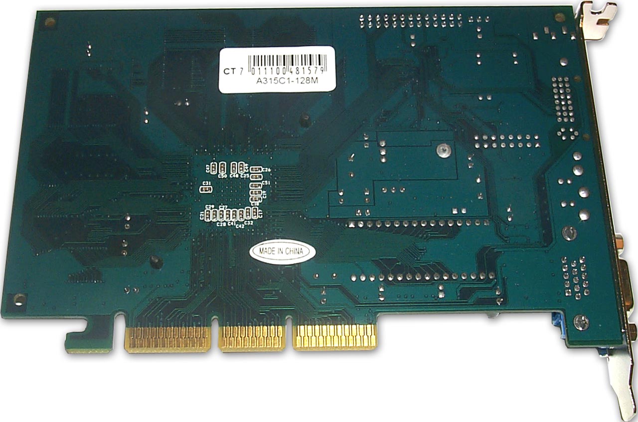 Вернемся к рассмотрению самой карты. Карта Joytech Apollo 3D Thrill 315 128MB имеет AGP x2/x4 интерфейс, 128 МБ SDR SDRAM памяти, размещенной в 8-ми микросхемах на лицевой стороне PCB.