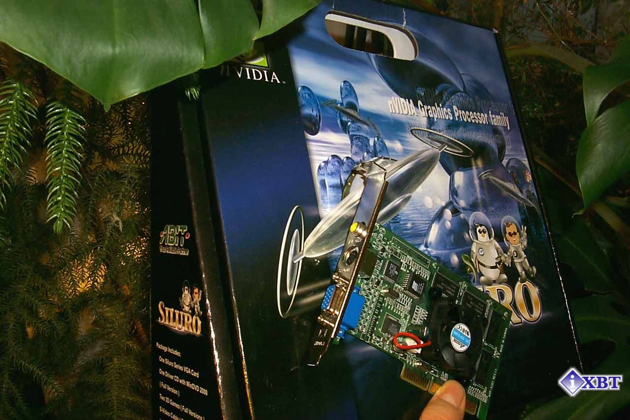 Я не случайно затронул тему сумок :-). Посмотрите, в какой упаковке поставляется тестируемая сегодня видеокарта! Пусть картонная, но это сумка. Такая большая, просторная, в ней можно унести не один десяток видеокарт, но эта коробка предназначена исключительно для одной единственной карточки — ABIT Siluro GF2 MX, которая на фоне своей упаковки выглядит просто мизерной.