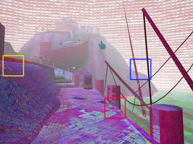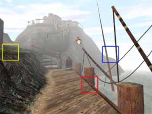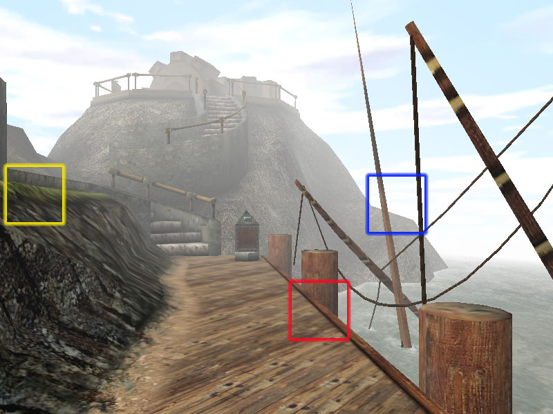 Даже тут хорошо видно, что до какого-то расстояния по мере удаления от наблюдателя четкость графики у RADEON 8500 действительно выше, но потом начинается полное безобразие. Короче, совершенно неясна причина такой картины, скорее всего это очередная ошибка программистов из ATI, поэтому вышеприведенное на скриншотах с AA "более высокое" качество является на самом деле фальшивым (в рамках данной игры).