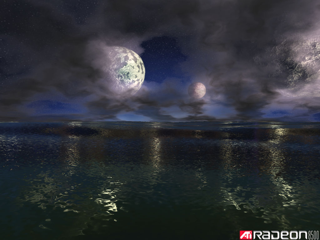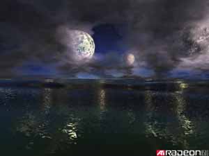 Ну и напоследок, маленькие радости. Да, пока посмотреть реальную работу пиксельных шейдеров 1.4 негде, поэтому владельцы RADEON 8500 пока и обходятся "демками". Однако, они весьма показательны. Примеры из некоторых мы уже приводили в начальном обзоре RADEON 8500, поэтому я обращу внимание на не так давно появившуюся на сайте ATI "демонстрашку", которая по ряду параметров может соперничать с Nature из 3DMark2001 (прежде всего по способу формирования водной поверхности):